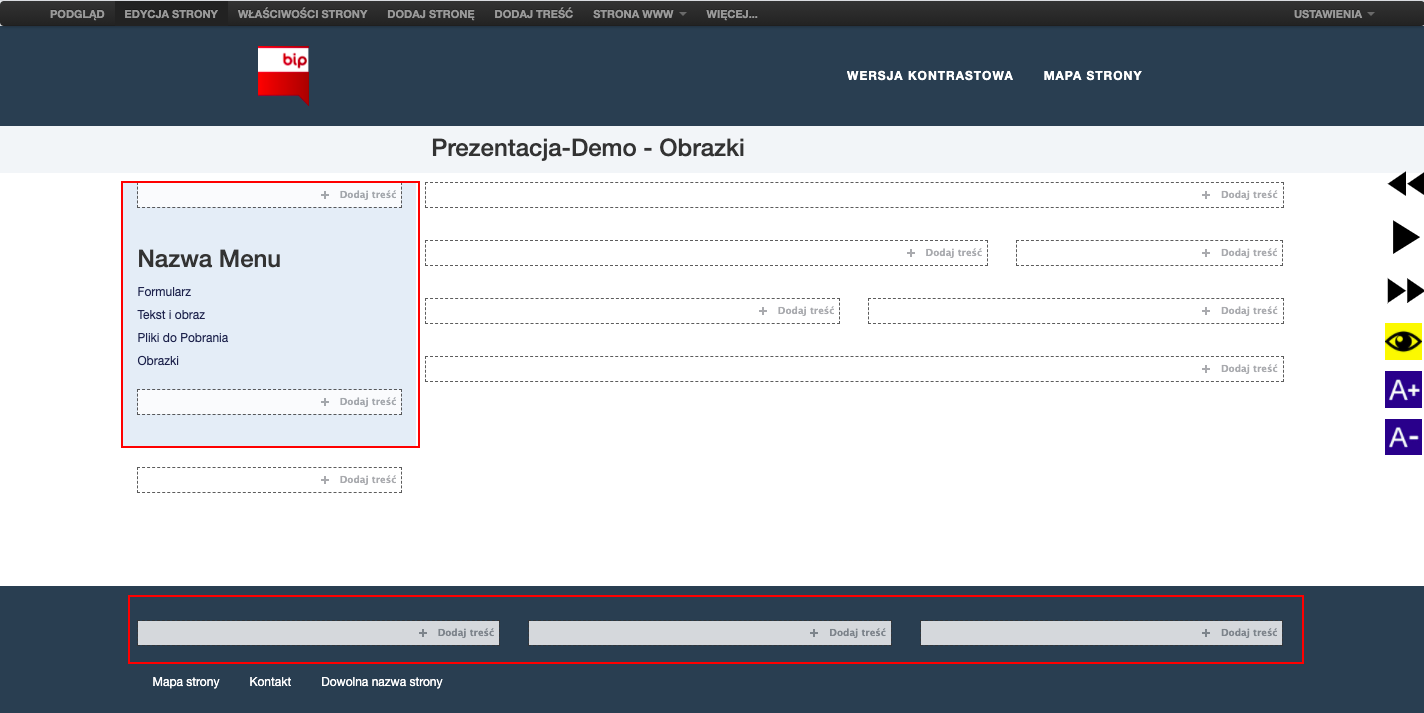 Jedynym miejscem, w którym taki rozmiar nie jest dopasowywany jest to miejsce, w którym nasi klienci preferują zamieszczać obrazki w dobieranym indywidualnie rozmiarze. Takie miejsca zaznaczone czerwoną ramką przedstawia poniższy obrazek na przykładowej witrynie: